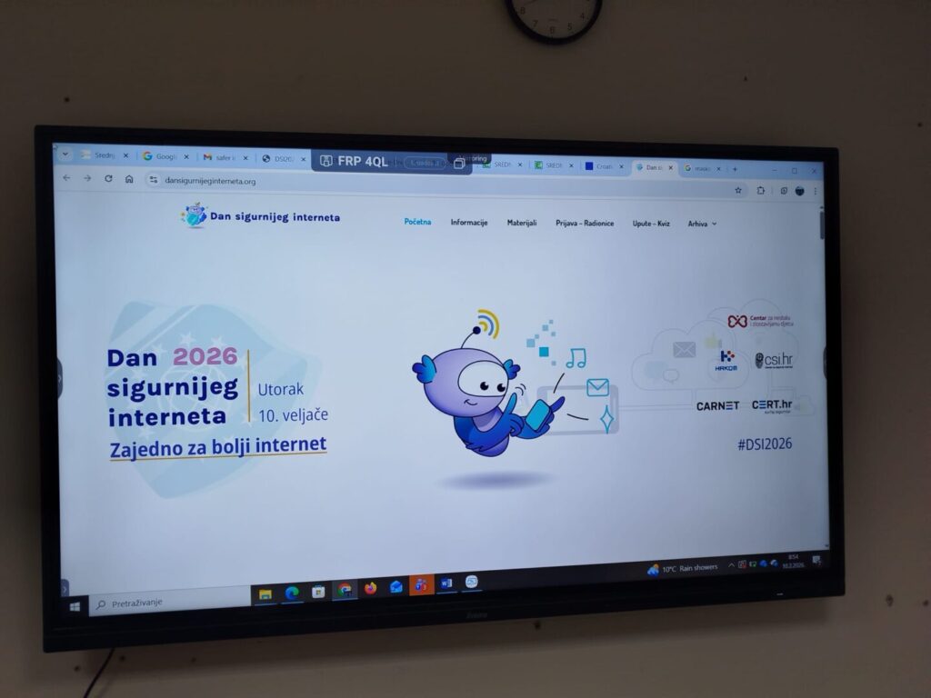 Učenici navedenih razreda su sudjelovali na Radionici- Ja sam podrška koja je izrađena od strane Hrvatskog centra za sigurniji Internet. Ciljevi radionice su: osnažiti učenike za prepoznavanje situacija koje zahtijevaju prijavu odraslim osobama, povećati spremnost učenika da potraže pomoć u situacijama uznemiravanja, smanjiti osjećaj srama, nepovjerenja i straha pri prijavljivanju nasilja, ojačati povezanost učenika s odraslim osobama od povjerenja u školi i obitelji, razvijati empatiju prema žrtvama i svijest o važnosti reagiranja. Ono što se učenicima najviše svidjelo je interakcija među kolegama kao i igranje uloga koje su bile u službi gore spomenutih ciljeva. Učenici 3. A i 4. B razreda su također pogledali TED talk o cybersigurnosti, Be Cybersecurity Safe: Lock your digital Door, Leon Geter, a učenici 1. A razreda TED talk, Online safety- it is not about the Internet, Jim Gamble.
