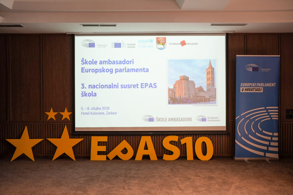 U razdoblju od 5. do 8. ožujka 2026. godine, Zadar je postao središte europskog dijaloga mladih. Na 3. nacionalnom susretu škola ambasadora Europskog parlamenta (EPAS) sudjelovale su i predstavnice naše škole: učenica Rita Štambuk (ambasadorica juniorka) i profesorica Petra Kokeza (ambasadorica seniorka).